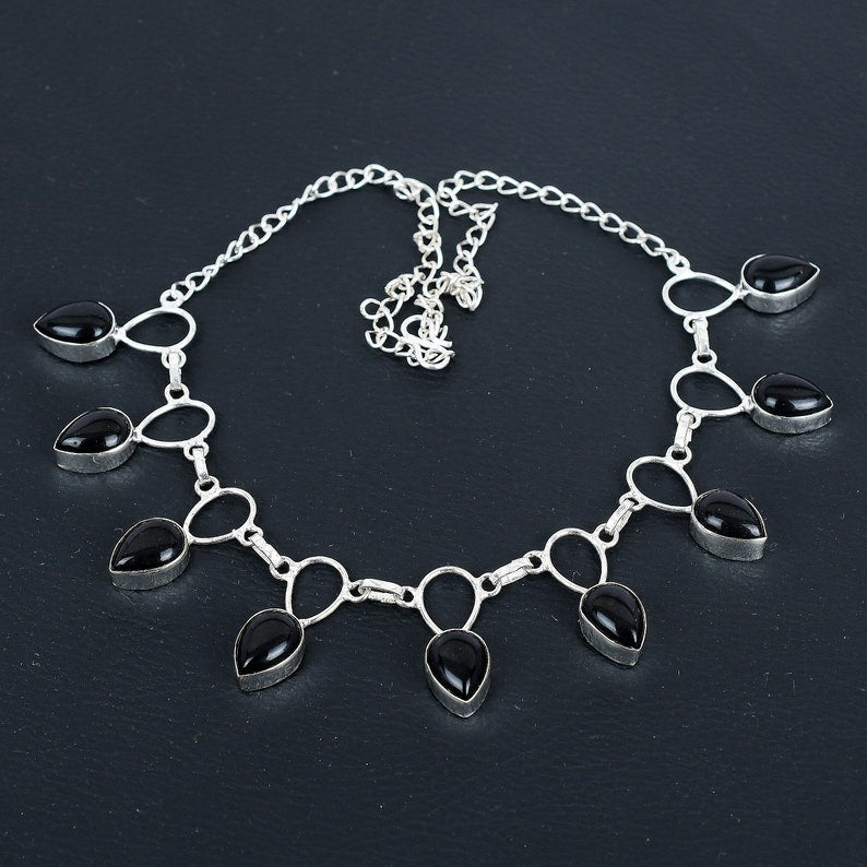 Black Onyx Necklace | 925 Sterling Silver Pendant | Handmade Gemstone Necklace | Protection & Strength Jewelry