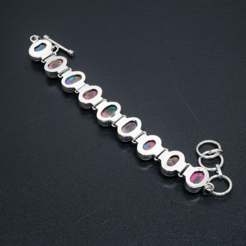 Showcasing the vibrant beauty of Kingman Dahlia Turquoise, this bracelet is a stunning blend of natural color and expert craftsmanship. Handcrafted in solid 925 sterling silver, it features genuine turquoise from the renowned Kingman Mine in Arizona, accented by delicate dahlia-like patterns within the stone matrix.