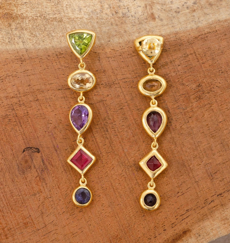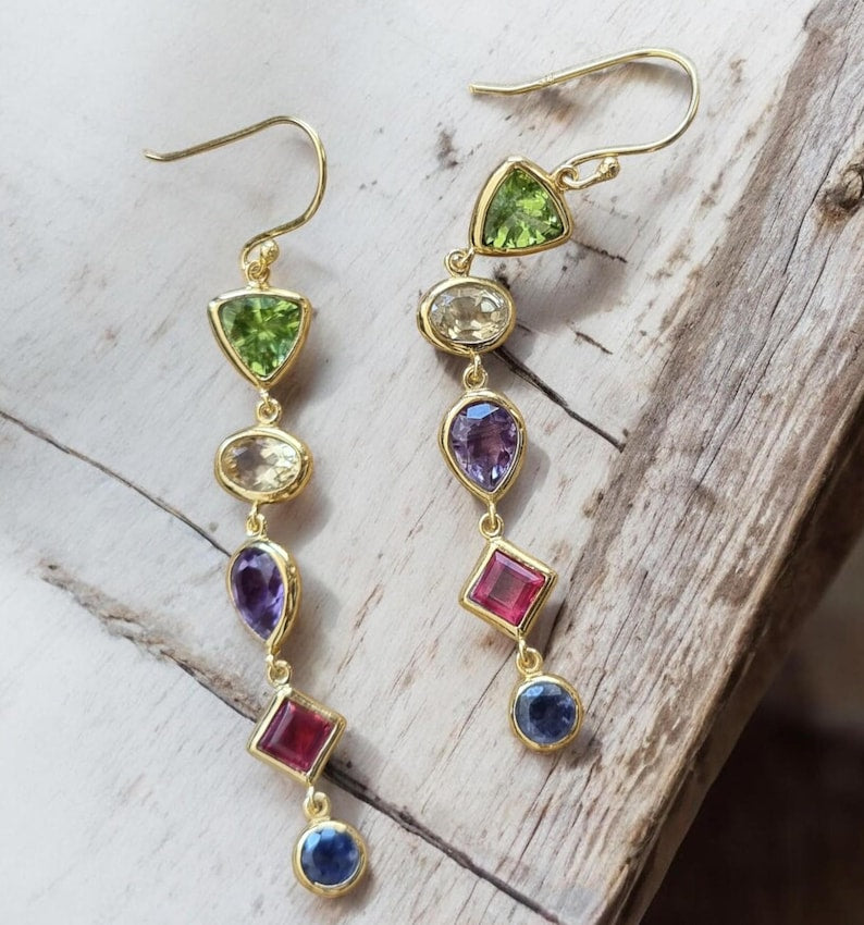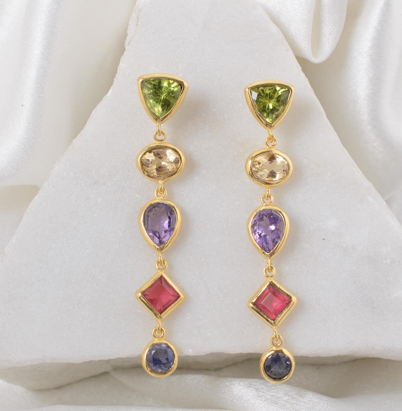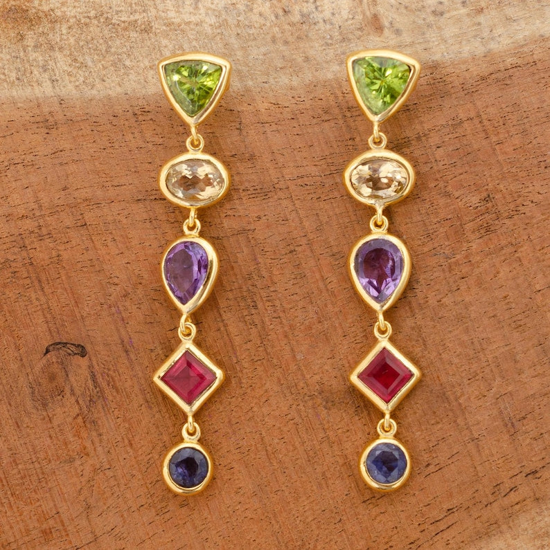 Citrine, Amethyst & Peridot Earrings | 925 Sterling Silver Gemstone Dangle Earrings
