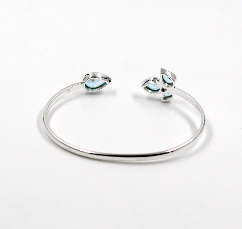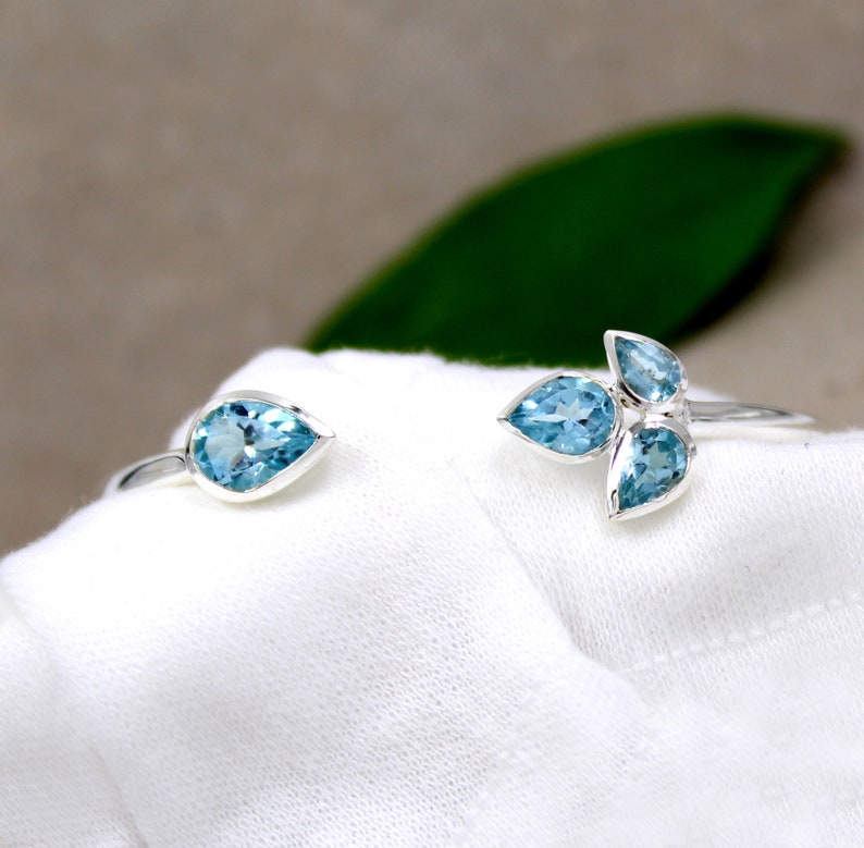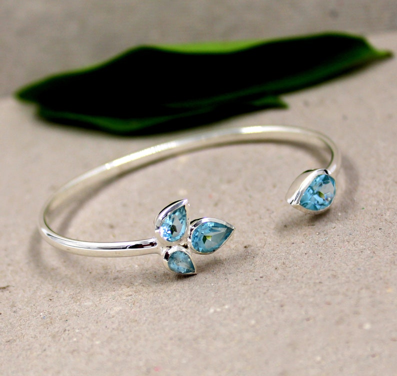 Blue Topaz Adjustable Bangle | 925 Sterling Silver Gemstone Cuff | Handmade Open Bracelet | December Birthstone Jewelry