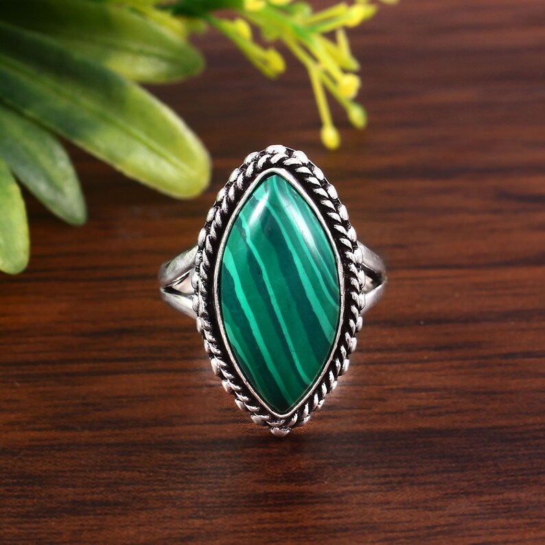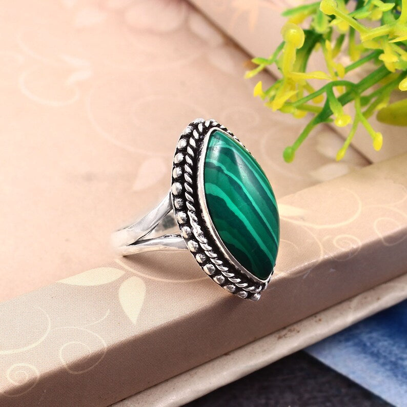 Malachite Gemstone Ring | 925 Sterling Silver | Handmade Green Stone Ring