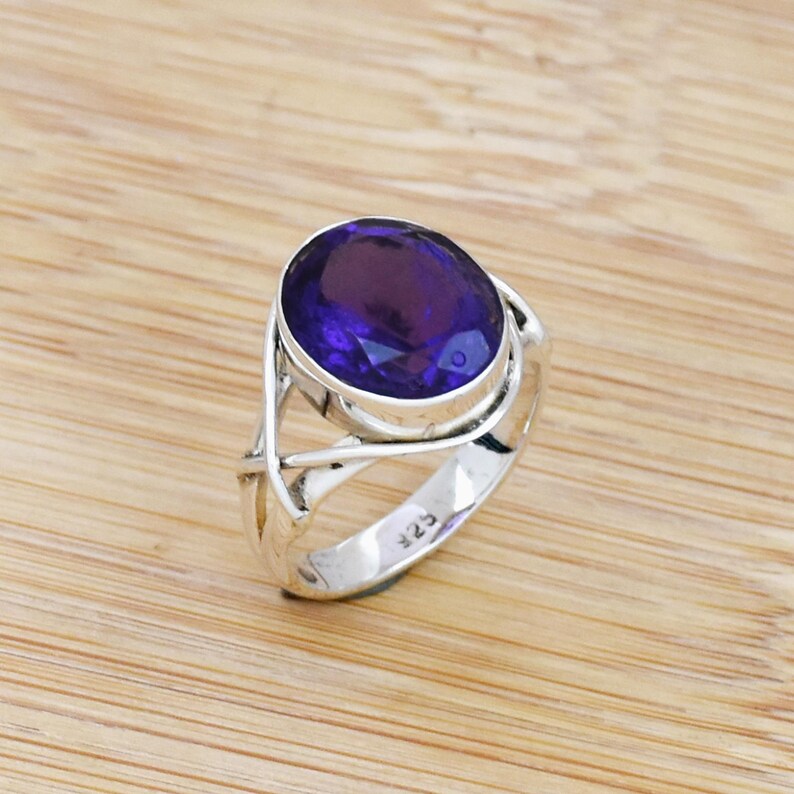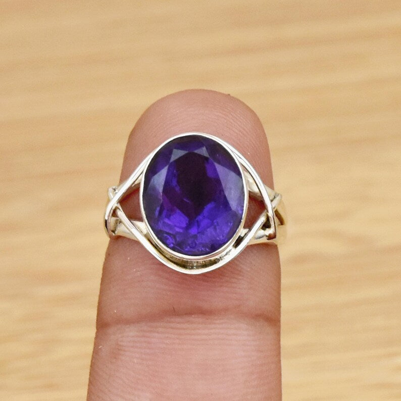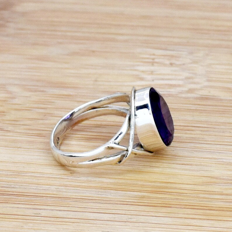Amethyst Gemstone Ring | 925 Sterling Silver Ring | February Birthstone Ring | Handmade Purple Crystal Rin