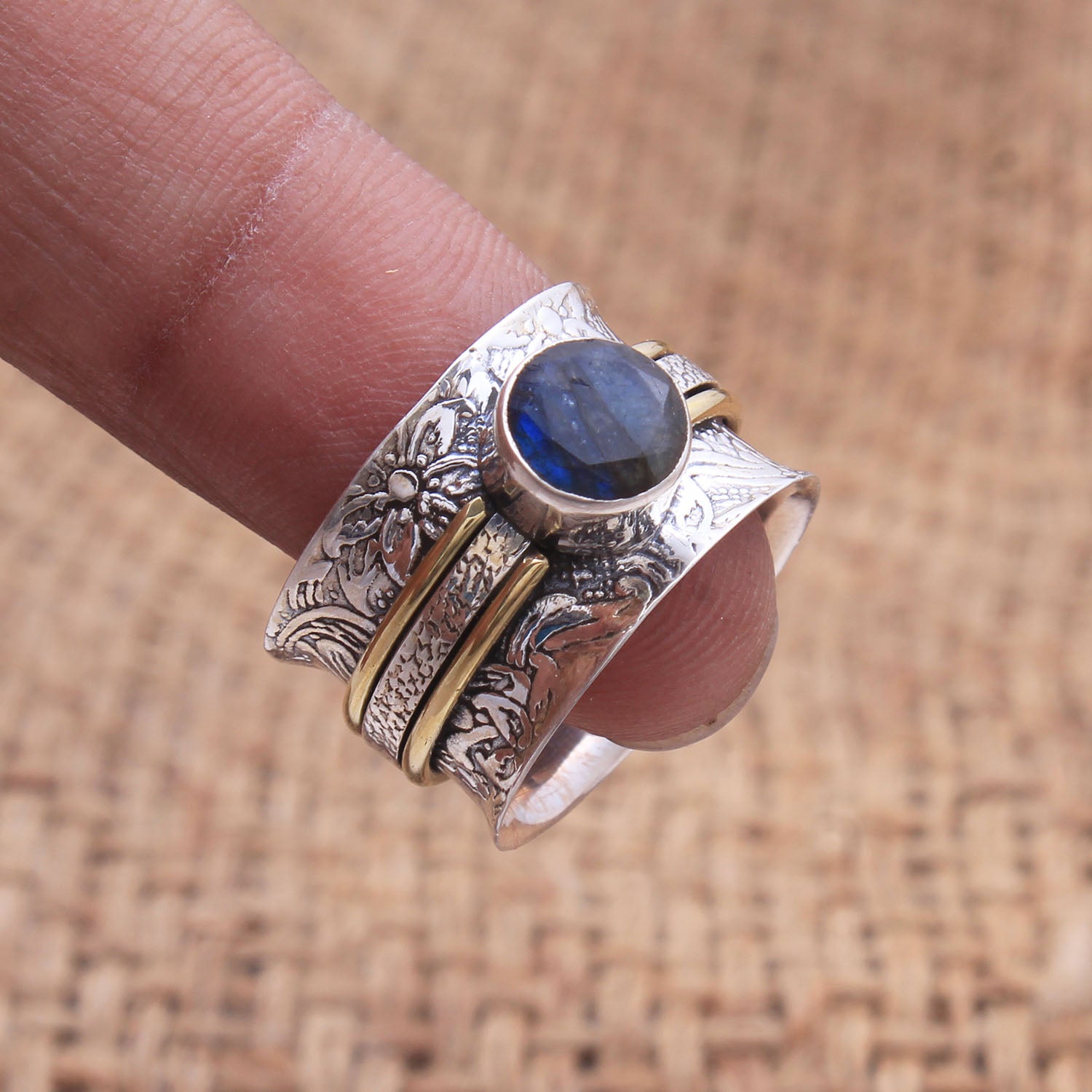 Labradorite Spinner Ring | 925 Sterling Silver Meditation Ring | Handmade Fidget Ring | Anxiety Relief Jewelry