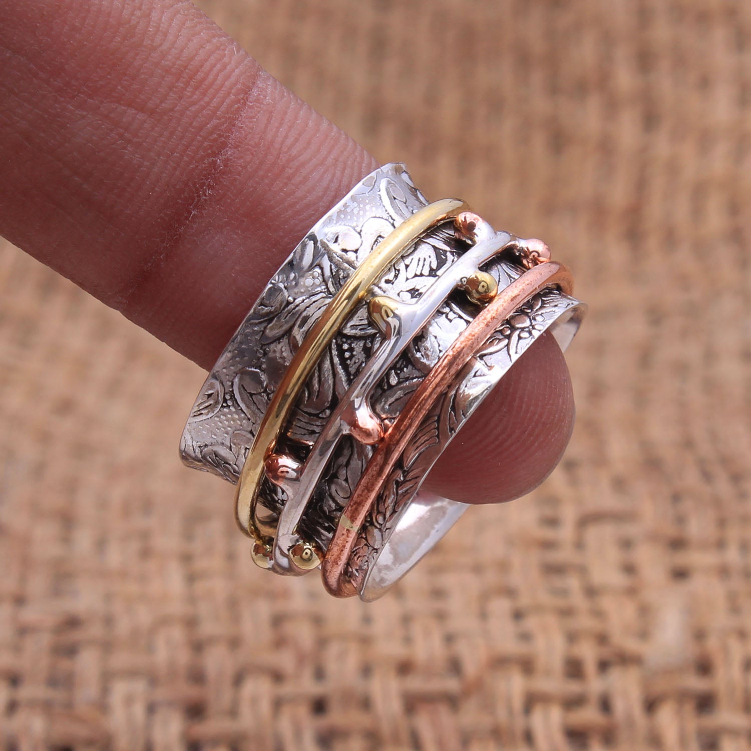 extured Spinner Band Ring | 925 Sterling Silver Fidget Ring | Handmade Meditation Ring