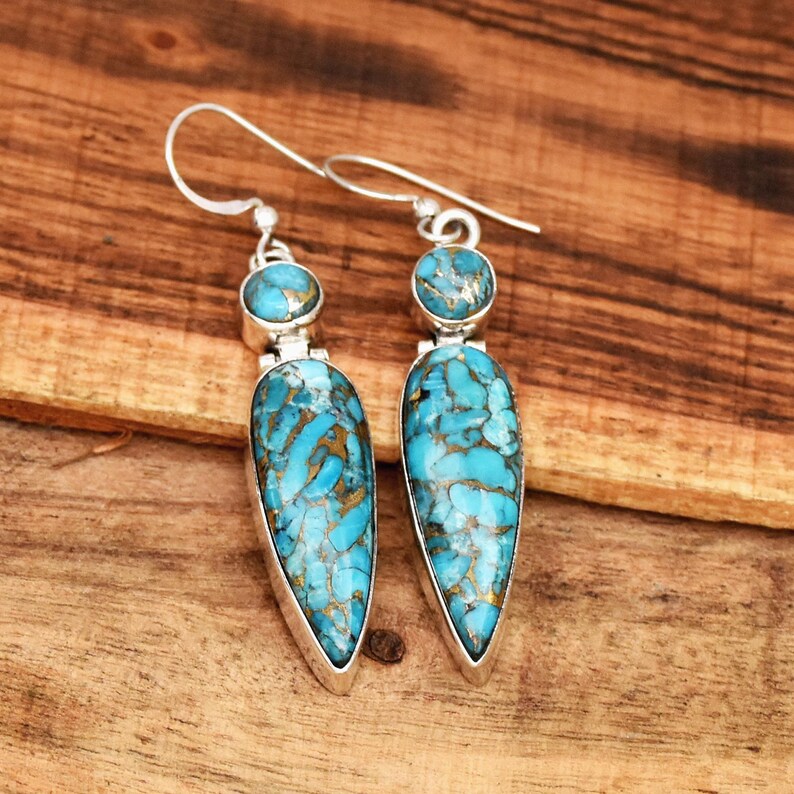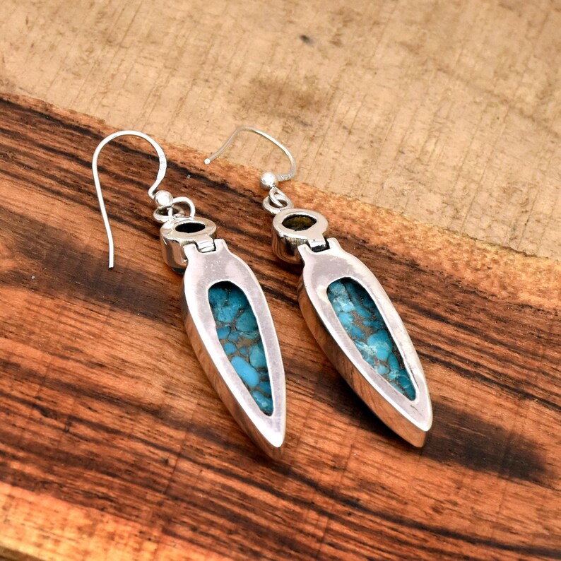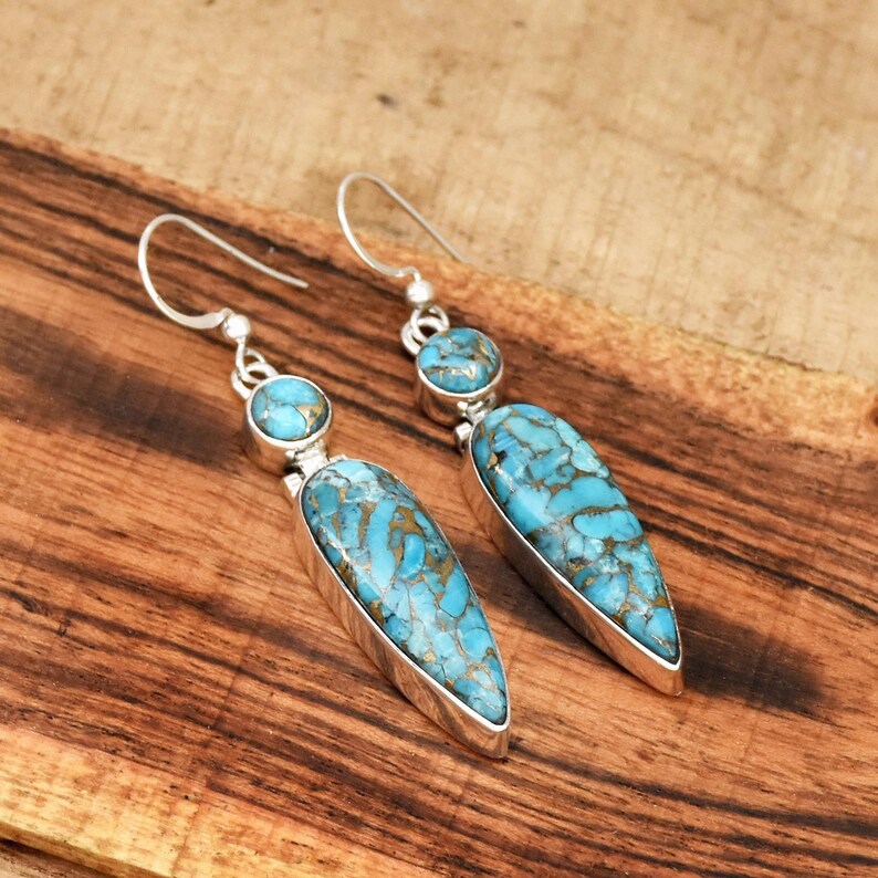 Blue Copper Turquoise Dangle Earrings – 925 Sterling Silver