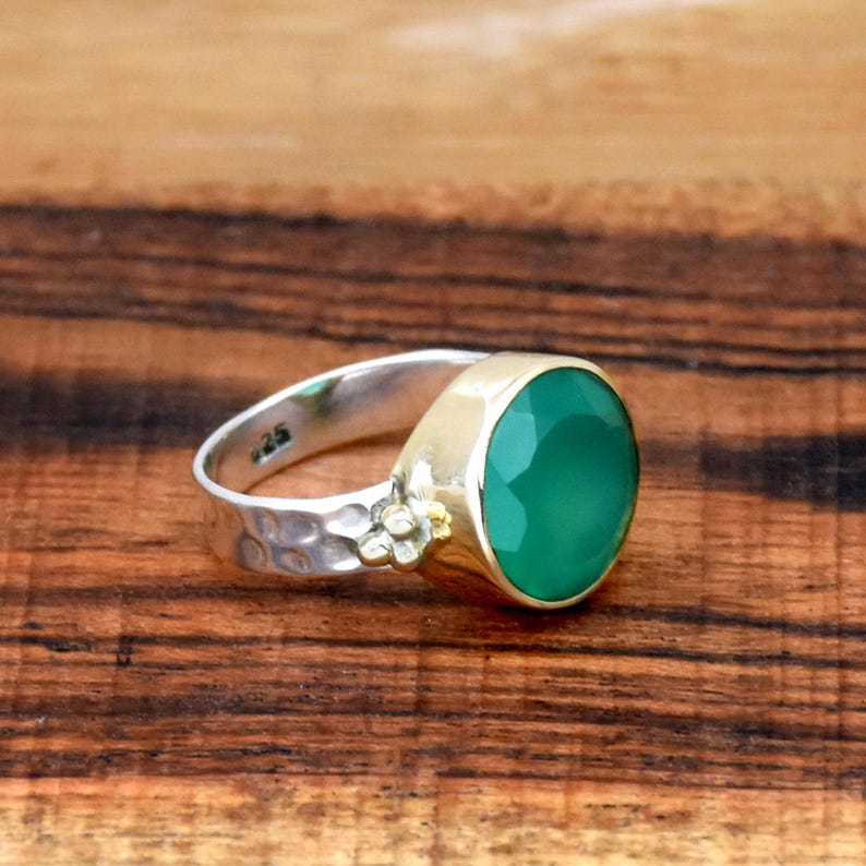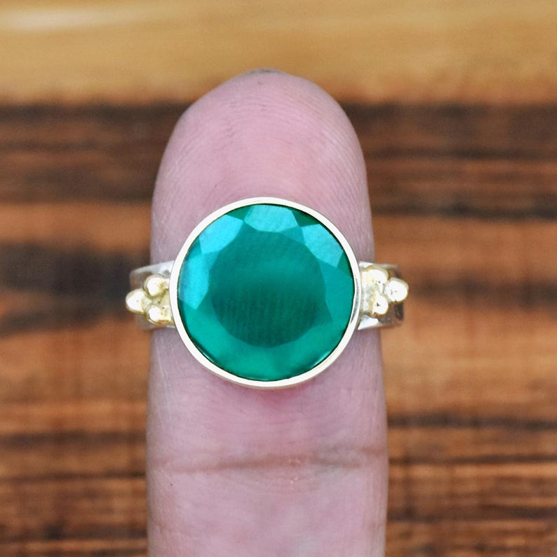 Green Onyx Ring | 925 Sterling Silver | Handmade Green Gemstone Ring | Dainty Boho Ring | Spiritual Healing Jewelry
